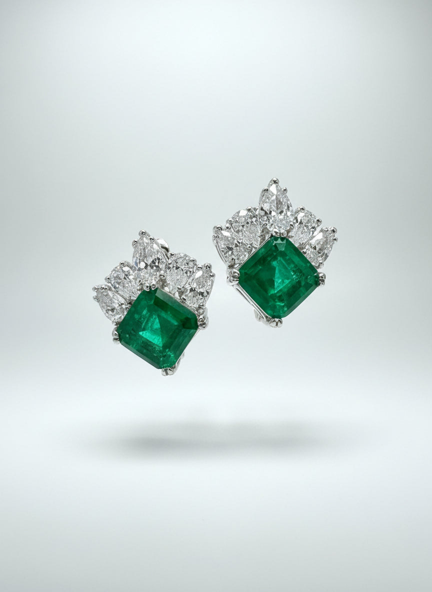Our beautiful goddess earrings are a statement piece. Available in paraiba and ruby crystal, and adorned with a crown like design of white sapphires.