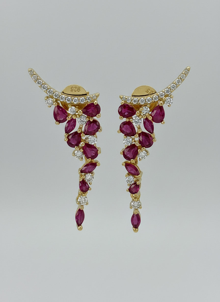 Dress up your ear party with these fun, yet elegant, ruby crystal waterfall ear climber earrings.